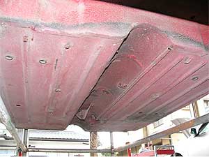 | 左右のパネルを下から見てみると、サイドシルの部分が袋状になっているのが良く解ると思います。 こういった部分の錆び止めの処置の違いによって、今後永く錆が出ずに乗れるか?という言が変ってきます。 とても気を使う部分です。 |