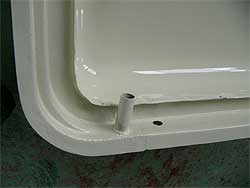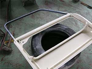 | 左下の写真がドアスキン(表面)。 写真に写っている面がポケット側になります。 この後ドアを1つに溶接し、全体に色を入れる事になります。 写真の白い部分は内側になる部分で、すでに塗装まで入れた状態。 今回のカラーは散々悩んだ末、オールド・イングリッシュ・ホワイトに決定しました。 また、右下の写真はドア内部の水抜き用パイプです。 上のスライドガラスから下に落ちた水はパイプを通り、右下の写真の部分から外へ出る仕組みとなっています。 巻き上げガラスに変更になったミニ(MK−III以降)と比べ太いパイプでしっかりと水抜きが出来る為、MK−I/IIのドアの方が水抜けはイイのです。 |