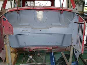 永らくお待たせしていた「究極のCOOPER−S」ですが、作業が少し進んだので紹介していきたいと思います。 まず、エンジンルームの奥側、バルクヘッド部分のパネルの塗装を全て剥がし、鉄板の状態を確認します。 ここは、多少の錆びは出ていますが、それほど酷い状態ではありませんでした。 |