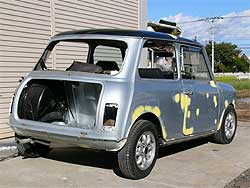 | MK−I仕様に変更となると、ボディ側にも加工が必要となります。 フロントではグリルの穴埋め加工、リアではMK−Iテールレンズを取り付ける為のプレート溶接を行う事になります。 |