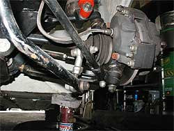 | 足回りや、ブレーキ・システムについても変更されています。 まず、ブレーキは10インチ4ポットキャリパーを取り付けられ、ピロボール式ロアアームや、前後にスタピライザーを装備。 マスターシリンダーは容量UPでKAD製に変更しています。 |