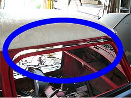 その問題の1つを、解決するのが左の写真。 MK−2より切り取ったルーフです。 つまり、形状が違うのですから、形状が同じルーフにしてしまえば良い訳です。 もちろん、切り取って付ける訳ですから、補強やその他の処置など大変な作業である事は間違いなおのですが。 |