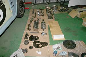 | クランク/コンロッド/スラストメタル、ライトウェイトリフター、オイルポンプ、クラッチディスク/カバー/ベアリング、各ガスケット、各オイルシール等は新品パーツにて交換、ミッション関係も全バラし、各シンクロリング、各ベアリング類は新品パーツにて交換です。 さあ、ここから組み上げましょう。 |