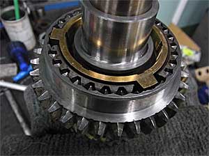 | ギア/シンクロスリーブ/シンクロと組んだのが左の写真。 丁寧に組み上げミッションケース内部の組み上げが終了。 |