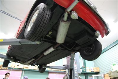 ベースとなったMKー1は1963年のオースチン・ミニです。 ここ20数年はガレージでずっと保管されていた車輛で、ボディはパネルのオリジナル度も高く、腐りなどはほとんどなくベリーグッドな状態です。 永らく動かしていませんでしたので、エンジン/クラッチ/ギアBOXは分解オーバーホールをし、ブレーキ回りなど各部をきっちりメンテナンスすればOKな状態ではありました。 今回、購入して頂いたお客様が足回りはハイドロ化したいという希望があり、各部を仕上げながらハイドロ化を行う形となりました。 写真で見て頂いても下回り等のコンディションも良いでしょう? |