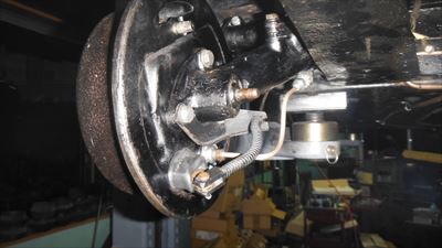 リアのドラムブレーキ回りの組み付け。 ホイールシリンダASSY、ブレーキシューなどももちろん新品に。 ホース類なども新品で組み付けしています。 ハイドロサスペンションはショックアブソーバーは本来付いていません。 フロントには追加で取り付ける事は可能ですが、リアには基本付きません。 リアはショックがなく、ヘルパースプリングというバネでサスペンションを引っ張ている形となっています。 |