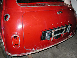 まもなく、全てのパーツが外し終わります。 その後、板金・塗装に入る状態で紹介したいと思います。 もう暫くお待ち下さい。 また、この車輌に興味のある方は、お気軽にお問い合わせ下さい。 実は、この後大変な事になってきました。 詳細は「究極のCOOPER−S」編へと続きます。 そちらをご覧下さい。 |