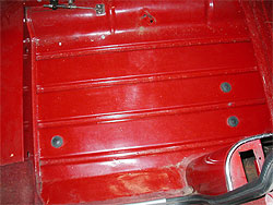そして、今回一番紹介したかったのがフロア。 カーペットを剥がした状態の写真ですが、どうです? とても40年経っている車とは思えないぐらいキレイな状態です。 もちろん、過去にレストアされてはいますが、その時の仕上げが余程良くないとここまでの状態を保つ事は出来ません。 過去の仕上げの良さは良く解る1枚です。 写真でしか紹介出来ないのが残念です。 下にも何枚か載せておきます。 |