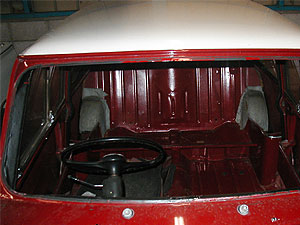 いよいよ板金・塗装する日が近づき、ボディパーツを外していきます。 ライト、グリルから内装パーツ、ハンドル類など、外せる物は全て外します。 まだ全てのパーツが外れている訳ではないのですが、部品を外した状態のボディえお紹介します。 |