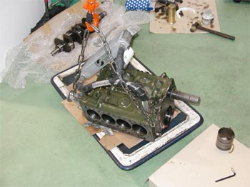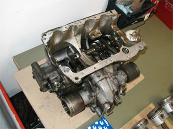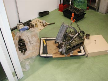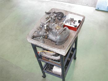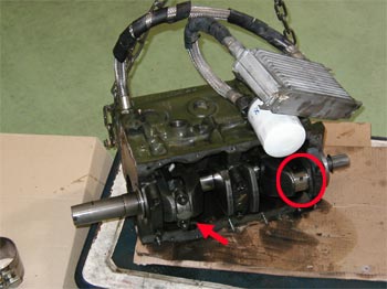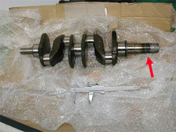 左の写真のエンジンブロック左に置いてあるのが外したクランク。
