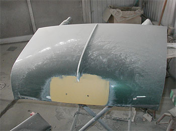 また、ボンネットバッチも変更しますので、それに合わせて穴を埋めます。