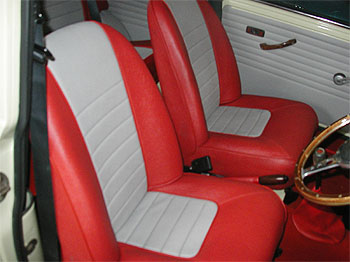 シートは赤/グレーツートンのレザー、内張りもグレーレザーで統一です。