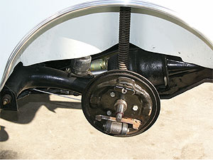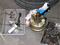 リア・サスペンションもフロント同様にオーバーホール。 ベアリングは全て外しグリスを入れ替え。 右リアは、ハブにほんのちょっと磨耗があるので交換します。 写真から、フェンダー内部の塗装が良く解ると思います。 |
