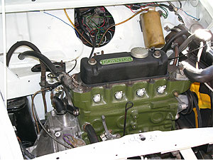 キャブレターも取り外し、オーバーホール中。 左の写真で、バルクヘッドの塗装の良さも解りますでしょうか? |