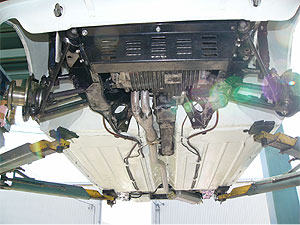 左の写真はフロントから。 フロントのサブフレームもキレイに仕上げてあります。 また、サスペンションのアーム類がキレイになっているのが解りますか? |