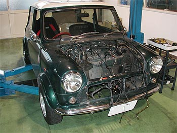 下は、エンジンを降ろされリフトに上げられている姿です。