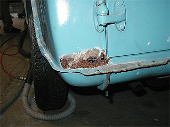 | ここから実際の作業を紹介していきます。 最初は錆び落としから。 錆びのある部分を研ぎ、錆びを無くしていきます。 ここでしっかりと落とさないと、そこから錆びが広がってしまう為、慎重に落としていきます。 下の写真はルーフとリアの写真です。 |