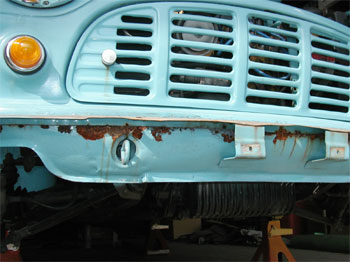 | 続いてリア周りです。 リア側もバンパー取り付け耳に錆びが出ています。 |