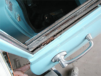 | ドア周りにも細かい錆びが。 スライドガラス下のチャネルの固定部分も錆びにやられています。 |