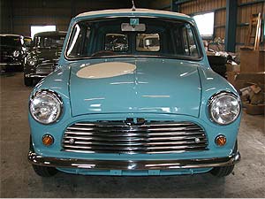| 細々したパーツを付け形になりました。 ボディの艶や写りこむ光で歪みが無いのが解るでしょうか。 ゼッケンサークルが少し派手な気もしますが・・・。 また、グリルはVANグリルとの交換を考えあえてサンズ無しでモーリスグリルに変更。 エンブレムはこれから取り付けです。 グリルが変るだけで印象は変りますね。 |