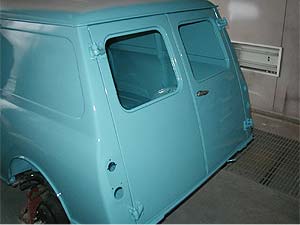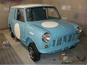 | 「VANをエアークス・カーのイメージで」という事から始まった今回の作業ですが、途中、MK−1仕様にこだわった部分が出たり、錆取りで手間が掛かったりと3ヶ月間に及ぶ作業となってしました。 その代わり、しっかりと仕上げたボディは、今後5年10年と永く楽しんでいただけるでしょう。 こういった仕上げの作業は手間はかかりますが、完成した時の喜びは大きいですね。 |