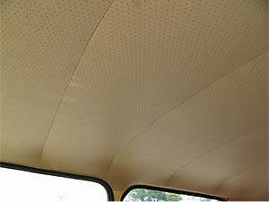 写真は天井の内張りです。 劣化し汚れていた内張りは外し、オリジナルと同様のパンチングレザーで張り替えました。 |