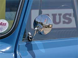 ミラーは、ルーカスタイプのフェンダーミラーをあえてスライド・ガラス部分に取り付け。 全体の雰囲気と見易さがGOOD。 |