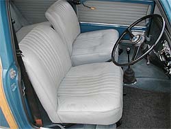インテリアも、フルレストアが行われベストな状態となっています。 シートやフロアカーペットなども張替え、ドア内張りやメーター脇なども新しく張り替えています。 3連センターメーターにセンターキーと、シンプルならスタイルはオールド・ミニならではですね。 |