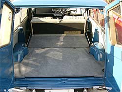 リアシートを倒し、ラゲッジスペースを最大に取った状態。 かなり広い空間を作る事が出来、大きめの荷物も苦にならない。 キャンプ道具や遊び道具を積んで出かけるにはベスト。 |