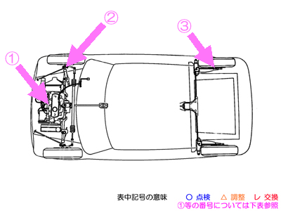 フロント側から見たフロア下。 歪みや痛みはありません。 外見の仕上がりだけで判断すると、フロア下はボロボロという車輌も以外と多い。 |