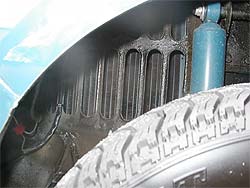 リアの下に付いているガソリンタンク。 トラベラーやバン、ピックアップなどがこの位置に取り付けられています。 容量は29リッターですが、燃費が良く、想像以上に走れます。 |