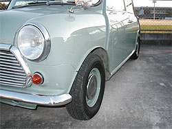 しっかりとレストアされたボディは錆び・腐りも無く、隅々まで良く仕上がっています。 外観のイメージはMK−3ですが、とても雰囲気のある色と、フェンダーレス、ボディ同色に塗ったホイールなどで、「これぞミニ」という感じです。 本来のミニの可愛らしさ、雰囲気の良さが出ていますね。 少しだけオシャレをして乗るとバッチリに合うかもしれません。 |