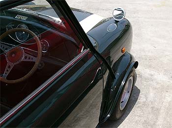 | チューニングカーのスポーティなイメージに合わせ、エクステアリをセットアップしました。 ボディカラーはレーシーなイメージのカンナム・グリーンにオールペント。 それに合わせルーフとクーパーラインをオールド・イングリッシュ・ホワイトでペイント。 クーパーラインは、フロントウェーザーを外し、下までしっかりとペイントしています。 また、エクステアリパーツにはNEWパーツをふんだんに使い、MK−3仕様で仕上げました。 6Jオーバーフェンダー、6J−10インチGBホイール、MK−3テールレンズ等はNEW。 フロント&リアウェザーやクォーターのウェザーもNEWです。 ミラーはレーシングミラーをあえてフェンダーに装着。 それに伴い、ドアのミラーホールは穴埋めしています。 写真では雰囲気が伝わりにくいと思いますが、実写をご覧いただければ良さを解って頂けるでしょう。 |