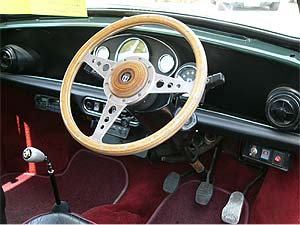 | インテリアは、ミニの定番であるセンターメーターは取り付け済み。 センターメーター化をしたくても、中々出来ない方も多いのでは? センターメーターに合わせスミス製タコメーターも取り付け済み。 また、ステリングは現在モトリタ・ウッドを装着していますが、レザー(NEW)に交換予定。 インテリアは基本的にオリジナルですが、今後、オーナーの好みでドレスアップしていく楽しみがありますね。 |