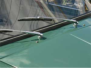 | MK−I仕様にするにあたって、ワイパーの位置も変更しています。 MK−III以降のミニはワイパーホールが4箇所空いており、内側の穴と外側の穴1つずつにワイパーが取り付けられています。 しかし、MK−Iの時代は内側2つしか穴は開いておらず、中央に寄って取り付けられていました。 それを再現する為に、外側の穴埋め・板金を行い、ワイパーの取り付け部やモーターを加工し中央に寄せています。 この場合、ワイパーは運転席の前から動く事となり(MK−III以降は逆)、MK−Iと同じ動きをする形になります。 板金・加工に手間はかかるのですが雰囲気は最高です。 また、ドアにはダミーヒンジを取り付け。 MK−Iスタイルにするなら押さえたいポイントは加工済みです。 |