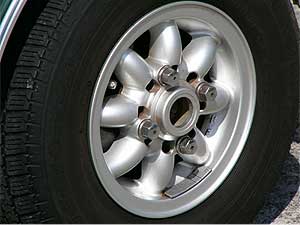 | オーバーフェンダーレスにメッキモール、そして10インチ4.5JのCRホイールとMK−I仕様では定番でありながらも、やはりシックリとくるスタイル。 オーバーフェンダーの穴埋めはシッカリと行い、10インチDISKキットも取り付け済み。 また、サスペンションに関しては前オーナーの好みで、ハイドロ・サスペンションの乗り心地を再現するべくコイルサスを取り付け、ショックブラケットが付属するARC製ショックにARC製スタビライザーを前後に装備しています。 |