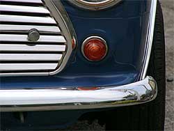 | フトントエンブレム、そしてグリルはAUSTIN COOPER MK−II仕様。 フロントマーカーもOLDタイプに変更し、雰囲気を出すのに一役買っている。 クーパーSのエンブレムと違い、少し小振りなスタンダード・クーパー(1000ccのクーパー)のエンブレムが大人し目でありながら洗練された感じを出しています。 |