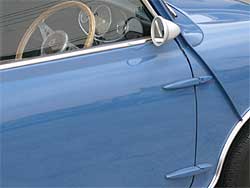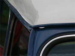 | ワイパーは、MK−I/IIと同じ様に中央に寄せ、外側の穴は板金により塞ぎます。 ワイパーの停止位置も運転席側になる様に加工。 また、MK−I/II/IIIの特徴でもあるルーフの水抜き穴を板金加工にて作成しています。 後期の切りっ放しの水抜きと違い、前後にスムーズに水が流れルーフに水が溜まりにくく、ルーフの縁の保護にも繋がる部分です。 ルーフ両サイドにあるドリップレールも板金加工で再現しました。 |