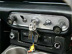 | イグニッションキーはMK−IIと同様にセンターキー化。 MK−I/II仕様を目指すなら押さえたい部分です。 この車輌のクーラーは吊り下げ式。 吊り下げ式の場合、メーター脇をスッキリさせセンターメーター化が出来るというメリットがあります。 |
