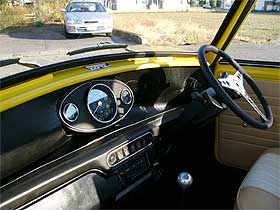 細部まで良く整備を行った1300ccエンジン。 扱い易く、パワーもあり、買い物などのチョイ乗りから高速をガンガン使っての長距離ドライブまで楽しめるエンジンです。 マフラーはステンレス製センターマフラーをチョイス。 ミニにはセンターマフラーが良く似合いますね。 |