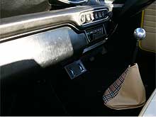 | 全体の質感を考え、部分的にクロームのパーツを配置しました。 また、インダッシュ・エアコンは左右のダクトへと吹き出し口を変更し、コントロールBOXもダッシュ下に変更しています。 |