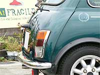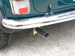 マフラーはオリジナルからRC40へ変更。 程よい太さのテールパイプと乾いた音質が特徴。 アイドリングでは静かですが、回すと良い音がする、ミニには定番のマフラーです。 |