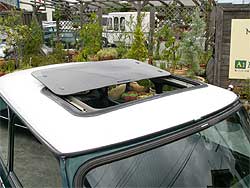 インテリアの項目でも紹介した電動サンルーフ。 写真の様に後方にスライドして開く形となる。 |