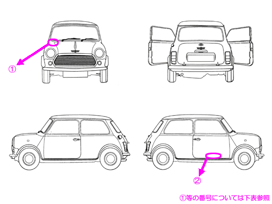 | @クリア部分が多少悪い為、修正 Aドアに小さい錆びがある為、修正 ボディ全体は大きな錆びもなく良好です。 |