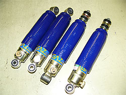 | キャブクーパーの足回りは、基本的に850ccの時代から変っていない。 パワーアップされた1300ccエンジンに、ノーマルの足回りでは負けてしまう。 また、ノーマルショックは作りもあまり良くなく、1万kmほどで寿命となってしまう。 そこで、ショックはGAZ製のものをNEW取り付け。 GAZショックは、硬すぎず、それでいてしっかりと粘ってくれるショックで、調整式の為に町乗りからスポーツ走行まで対応が可能。 また、ラバーコーンの経年変化による車高の変化はHi−Loで調整し、その車高に合わせる為にショートストロークのショックを選択。 基本整備では、ブレーキ系統やサスペンション機構は全て点検整備を行いますので、永く安心して乗って頂けます。。 |