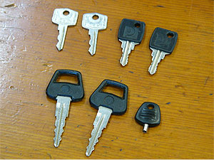 | 複数オーナーが変ったり、乗っている途中で無くしてしまう事の多いスペアキー。 この車輌は、フルセット揃っています。 特に、右下のアンテナキーは紛失している場合が多く、部品でも手配出来ないので貴重品。 |