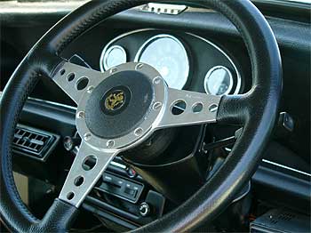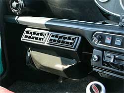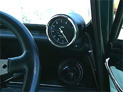 センターメーターは3連200km/hを取り付け済み。 センターメーター化に伴い、無くなるタコメーターはメーターポットを使用し、上部パネル右側に取り付け。 タコメーターも、スミス製クロノタイプを使用しています。 また、センターメーターにした場合、エアコンの吹き出し口を移動する場合が出てきますが、この車輌のエアコンは吊り下げ式の為、メーター脇をスッキリとまとめる事が可能。 これだけでもグッと雰囲気が良くなりますね。 |