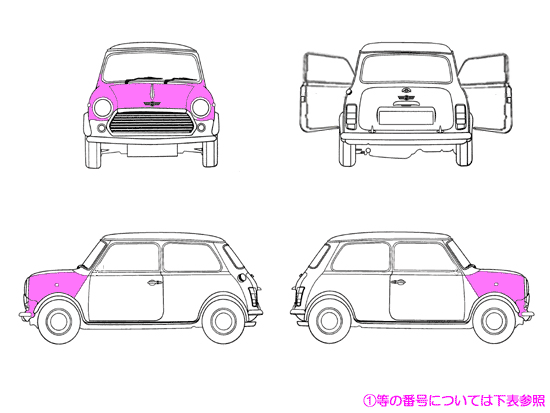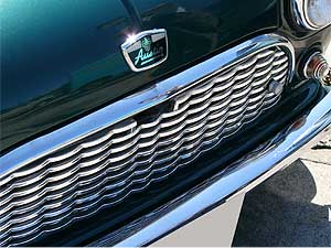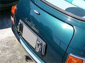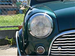 | ミニでは定番中の定番、ルーカスのフェンダーミラーを装備。 純正の暗いシールドビームはルーカスH4に変更。 ルーカス刻印入りのヘッドライトは、今では貴重。 フロントマーカーも旧タイプに変更し、MK−Iグリルと合わせて雰囲気良く仕立てています。 また、グリルはビス止めではなく、グリルボタンを取り付け。 ビス穴からの錆び防止とメンテナンス製に一役買っています。 | ![]() |