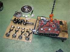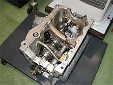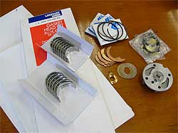 | フルオーバーホールは、エンジン本体・クラッチ・ギアBOX・デフ回りと全てバラして行います。 消耗品はモチロン新品に交換。 上記の写真は交換する部品の一部です。 しっかり摺り合わせを行い組み上げるエンジンは、工場で組み上げられたエンジンとは別物と言っても良いでしょう。 オーバーホールに関しては、「ただ今、仕事中」コーナーで多数紹介しています。 是非、そちらも参考にご覧になってみてください。 |