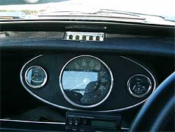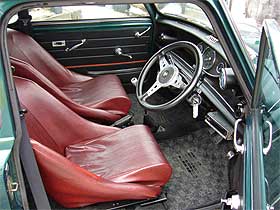 細かい部分まで手を入れたインテリア。 センターメーター化、ステアリング、シートと、センス良く仕立てています。 やはりミニはセンターメーターが似合いますね。 |